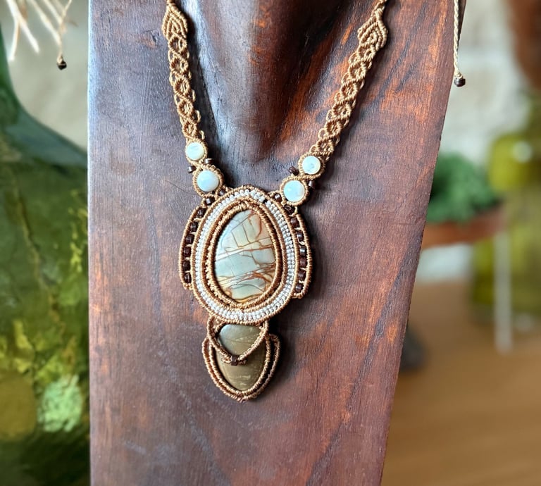 Explorez notre collection de bijoux artisanaux en macramé et pierres fines.